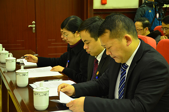 大会执行主席:谭诤、王飞、韦泽福、伍远良、余小勇、赵瑜、田洪明、任远平、蒋胜、林世栋在主席台前排就坐。
