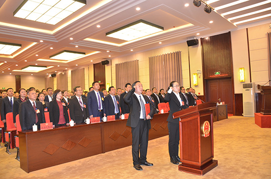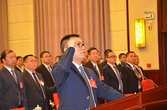 当选的县人大常委会副主任饶小佳、县人大常委会委员吴银、县监察委员会主任文永洪分别向宪法宣誓。