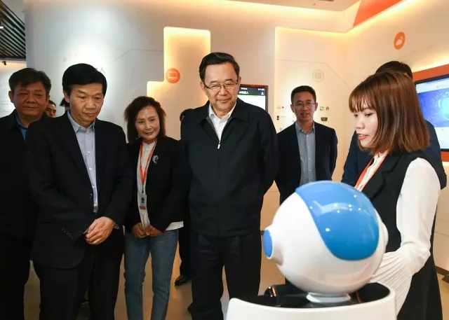 日前,孙志刚在贵州小i机器人科技公司考察(杜朋城 摄)