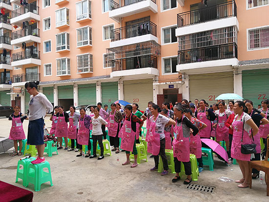 会上,刘忠群指出,新时代妇女同志要展现新风貌,树立新形象,并鼓励到场妇女要积极发扬自尊自信、自立自强精神,改变旧观念,着力提升自我修养、能力,助力实现脱贫攻坚;特邀讲师马昌燕用鲜活的例子像妇女们讲授了食品安全、环境保护、家庭教育、家庭的长远发展等相关知识,同时现场教授养生操、家政小诀窍,与到场妇女进行了良好的沟通交流,此外,会上对禁毒工作作了宣传。会后,刘忠群一行深入搬迁群众家中,进行手把手教学。