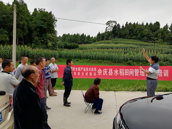 罗德强来到田间地头观察,逐一问诊把脉,发现部份田块稻卷叶螟和稻飞虱比较严重,少数田块有严重脱肥现象。现场看后立即召开群众会,当即招集农户31户36人,通过在田间给大家进行现场讲解指导形式进行。罗德强首先针对田间病虫害选那类药、用药剂量、施用方法进行详细讲解,然后从田间拔一棵水稻植株,根据各品种叶龄指数和田间脱肥情况进行综合分析,在这个生长阶段施什么肥、施多少肥、怎样施用逐一给大家进行讲述。大家听后非常满意,并给罗老师热烈的掌声,都表示严格按专家讲的去做,争取今年获得更大丰收。