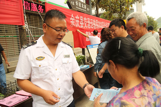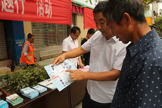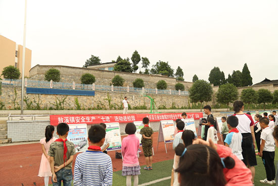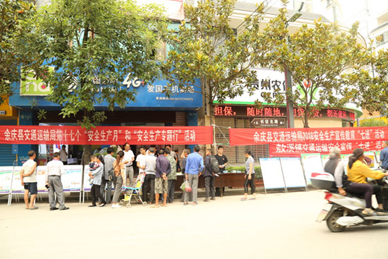 活动当天正逢敖溪镇赶场,利用这个大好机会宣传组人员在集镇人群集中地布置了宣传活动阵地,向前来赶场的群众进行现场宣传。通过拉横幅、发放宣传资料、展出展板、安全咨询等形式,进一步提高了广大群众对安全知识的知晓率。