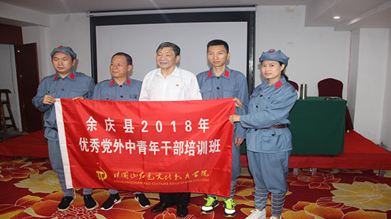 7月9日,余庆县2018年优秀党外中青年干部培训班在井冈山隆重开班,来自全县各单位的35名优秀党外中青年干部、4名党外非公经济代表人士共计39名学员参加培训。余庆县委统战部副部长、工商联党组书记胡前,井冈山红色文化教育学院院长彭朝球出席开班仪式。