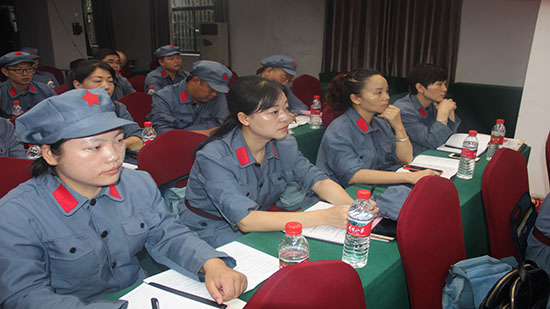 在全体奏唱国歌后,彭朝球代表学院向学员们致欢迎辞,并从五个方面介绍了“井冈山”的情况,解读了“井冈山”精神。随后胡前、彭朝球向培训班学员代表授予了班旗。