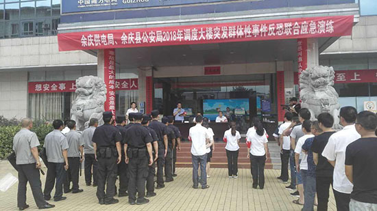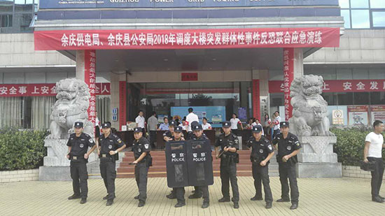 7月5日14时00分至17时30分,余庆县公安局联合县供电局举办了2018年度大楼突发群体性事件反恐联合应急演练,此次演练参加反恐、应急、处突100余人,特巡警大队指挥组、应急处突组30名队员参与演练。