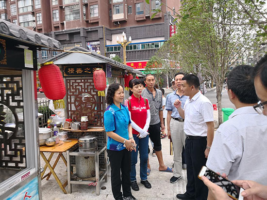 7月5日,省政府参事室、省食品药品监督管理局副局长钟春琍等一行7人,到我县调研指导提升食品摊贩综合治理工作,市政府办公室调研员李黔祥、市市场监督管理局副局长张国威,县委常委、副县长俞布仁,县市管局局长张道初等陪同调研。